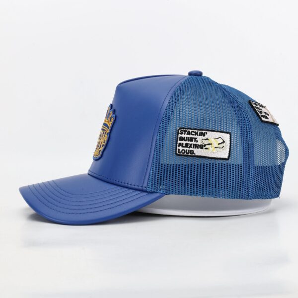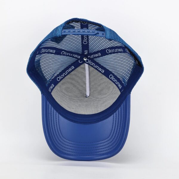 • Elevate your look with the Olorunwa Crown Leather Cap,  a perfect blend of luxury and bold streetwear. Crafted entirely from premium Blue leather, this cap delivers a sleek and sophisticated edge that stands out in any crowd. The front proudly features the signature Olorunwa (ORW) patch logo, embroidered in rich gold and white tones with a crown design symbolizing excellence and power. Its structured design ensures a secure fit and long-lasting shape, while the soft inner lining provides exceptional comfort for everyday wear.